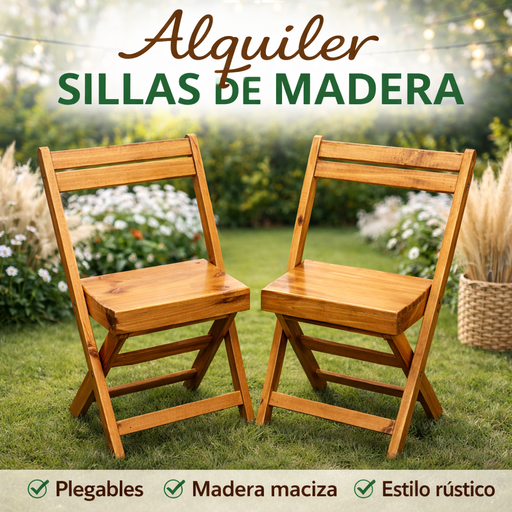Los productos son de madera plegables perfectas para cualquier evento, elegantes, cómodas y con un toque clásico que realza cualquier ocasión.